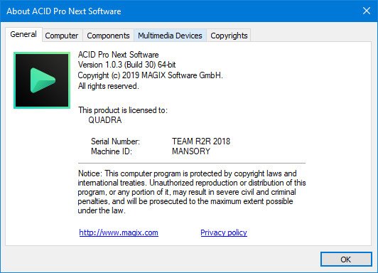 Скачать программу MAGIX ACID Pro Next 1.0.3.30 - x86 (468,5 МБ): Скачать программу MAGIX ACID Pro Next 1.0.3.30 - x64 (516,8 МБ):