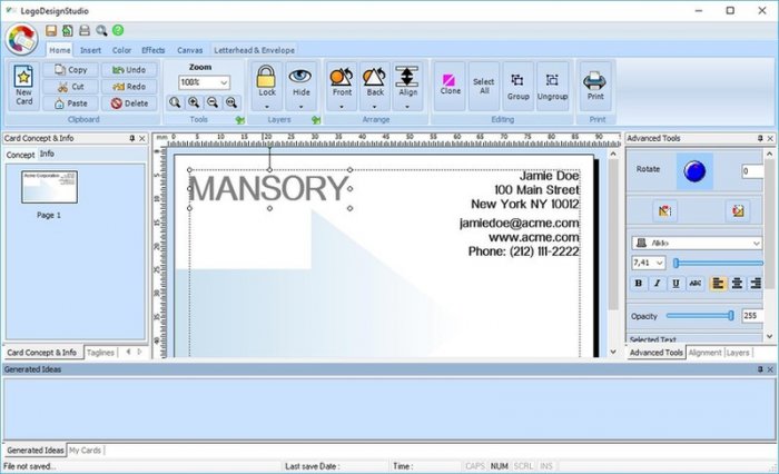 • Business Card Studio Pro сочетает в себе революционный ACG (Auto Concept Generator) и невероятную графику, предоставляя вам варианты дизайна, ранее недоступные в любом программном обеспечении для визитных карточек. После того, как вы введете свое имя, должность, название компании и другие данные, ACG генерирует неограниченное количество вариантов дизайна визитной карточки. Тогда вы сможете изменить различные дизайны визиток для уникального внешнего вида. Когда вы закончите, Business Card Studio Pro поможет вам в оформлении фирменных бланков и конвертов, создавая единообразный вид всей вашей печатной продукции. Теперь у вас есть все инструменты, которые используют профессиональные дизайнеры!
