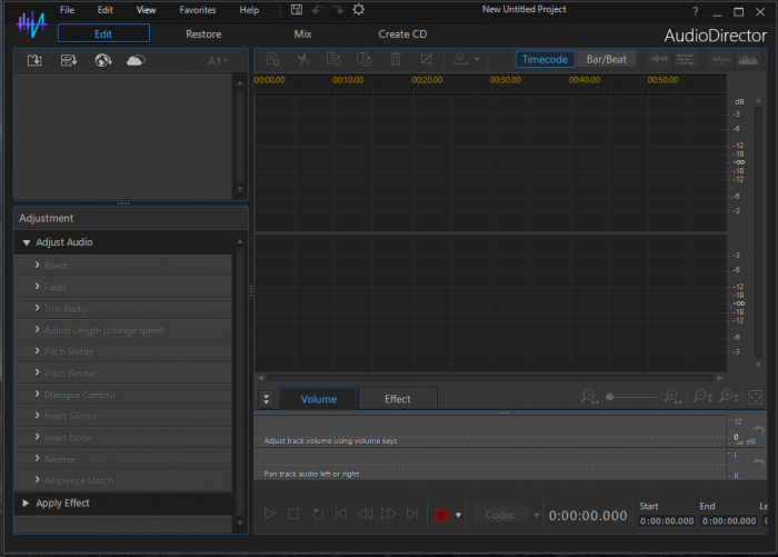 CyberLink AudioDirector Ultra – мощный инструментарий для обработки музыки, который можно бесплатно скачать на diakov.net. AudioDirector позволяет создавать собственные саундтреки с помощью многодорожечной записи, использовать средства микширования, автоматически удалять шумы и помехи и выполнять восстановление аудио. Благодаря возможности воспроизведения видео параллельно с редактированием звука пользователи AudioDirector могут синхронизировать корректировки аудио с картинкой. AudioDirector предлагает поддержку широкого ряда видео- и аудиоформатов, а также многоканального звука.