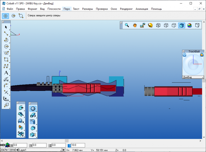• Виртуальный пространственный манипулятор позволяет динамически управлять видом модели.