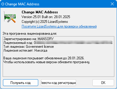Скачать программу LizardSystems Change MAC Address 25.01 (6,1 МБ):