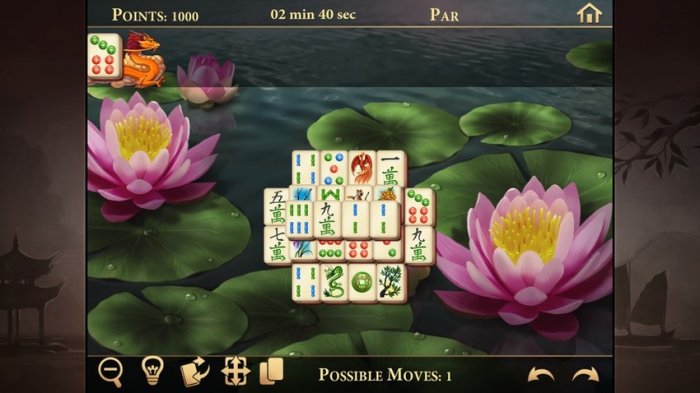В игре два варианта традиционной китайской настольной игры. Dragon-Mahjongg - быстрый режим, где время решает все. Classic Mahjongg - классический вариант известной настольной игры. Вы можете менять фоны и вид фишек для каждого уровня, а также выбрать перспективу.
