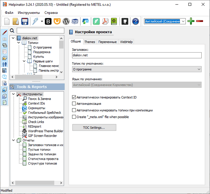 - Формат хранения проекта Helpinator представляет собой ZIP-файл, поэтому вы можете извлекать тексты в любое время, даже без Helpinator.