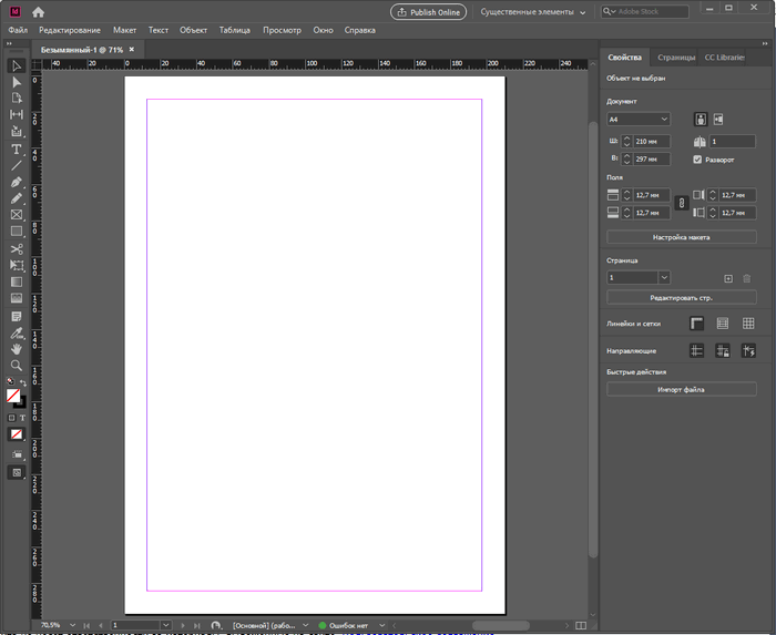 Adobe InDesign представляет собой универсальное приложение для публикации контента, которое обеспечивает точный контроль над дизайном и типографикой на уровне пикселов. Удобная адаптация макетов к различным форматам страниц, ориентациям и устройствам с сохранением высокого качества изображения.