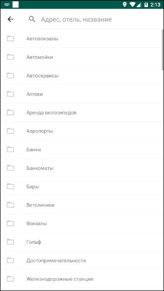 • Поиск по категориям (аэропорты, станции метро, вокзалы, отели и т.д.)