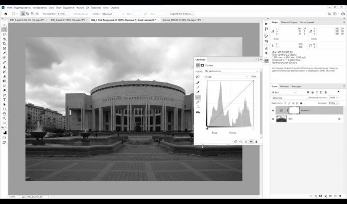 • Часть 4. Коррекция монохромных изображений с помощью кривых.