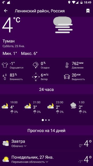 Подробный прогноз погоды:• Краткосрочный (24-часовой) и долгосрочный (7-дневный) прогноз погоды для выбранного местоположения.