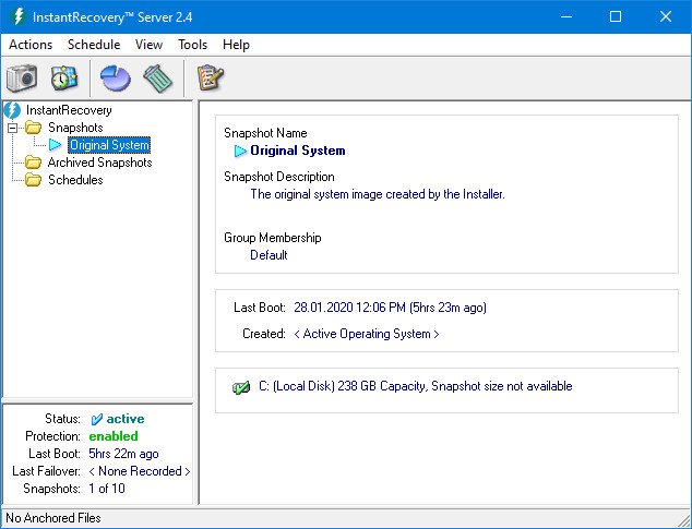Multiple Snapshots and DifferentialsInstantRecovery supports multiple snapshots enabling users to capture different system conditions. Each snapshot is bootable and will return the system to the specified system condition. InstantRecovery also supports differential snapshots where only the data that has changed is copied to the target snapshot. All snapshots support the Data Anchoring option.