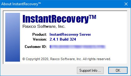 Система ⇒ Raxco InstantRecovery Server 2.4.1.324