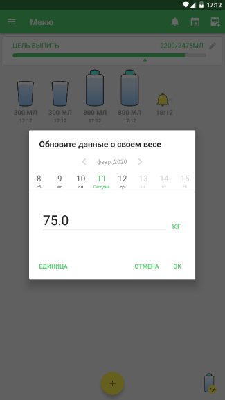 Особенности включают в себя:• Напоминание, которое предупредит о количестве воды, которое вам необходимо выпить до конца дня