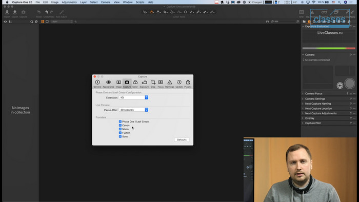 Смотрите класс и вы узнаете, как настроить Capture One Pro для подключения фотоаппарата вашей марки и какие возможности для управления камерой есть в Capture One Pro.