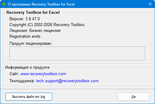 Данные и диски ⇒ Recovery Toolbox for Excel 3.8.47.0
