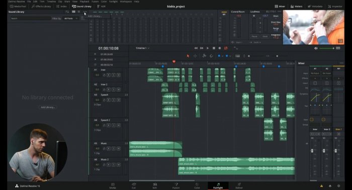 Глава 5. Вкладка Fairlight. Работа со звуком.• Творим магию с помощью вкладки Fairlight - работаем с интершумами, с голосом, шумами и крутыми звуками, чтобы сделать ролик эффектнее.