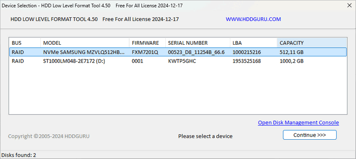 Скачать программу HDD Low Level Format Tool 4.50 (2,05 МБ):