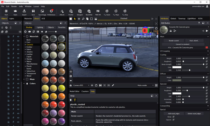 - Maverick Studio имеет очень обширную библиотеку с более чем 1300 готовыми материалами, которые вы можете просто перетащить на свои модели.