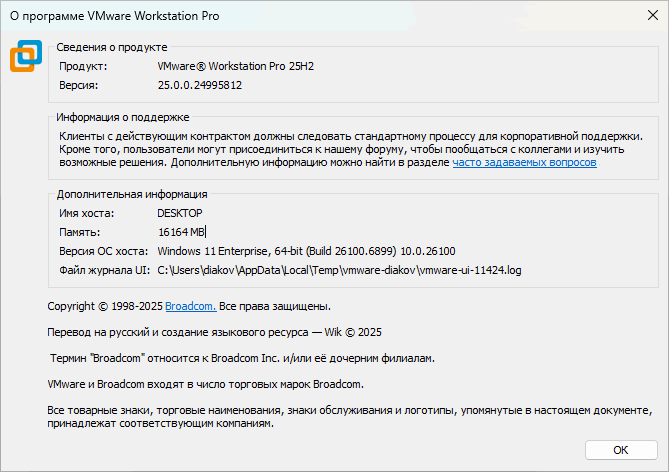 Система ⇒ VMware Workstation Pro 25H2 25.0.0.24995812