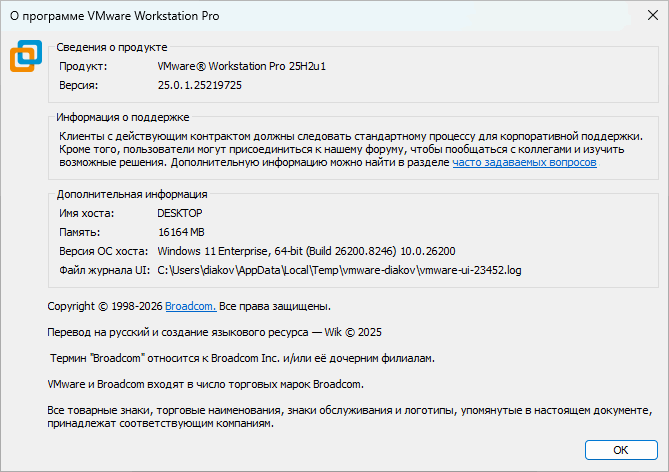 Система ⇒ VMware Workstation Pro 25H2u1 25.0.1.25219725