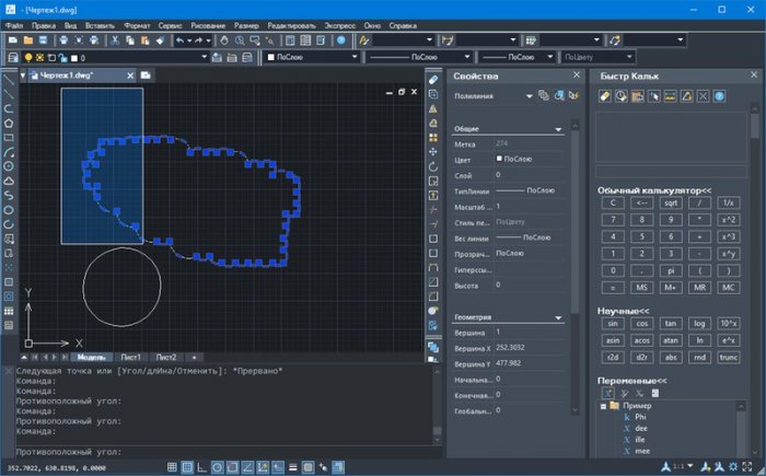Мощная система для 2D проектирования и создания чертежей с полной поддержкой формата DWG, привычным интерфейсом и уникальными функциями, дающими значительное удобство в работе: умным выбором объектов по заданным критериям, сравнением чертежей, жестами мышью, голосовыми метками, умной печатью и многими другими. Являясь результатом постоянного совершенствования в течение более 20 лет,