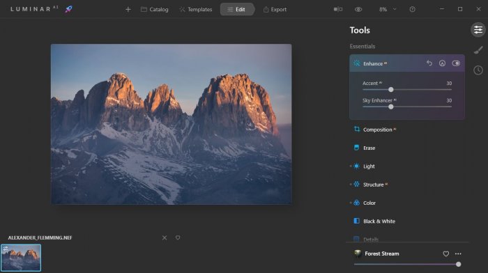 Luminar AI позволяет максимально быстро воплотить в жизнь свое творческое видение. Искусственный интеллект берет на себя скучную и рутинную работу. Но вы можете редактировать и настраивать каждый шаг.