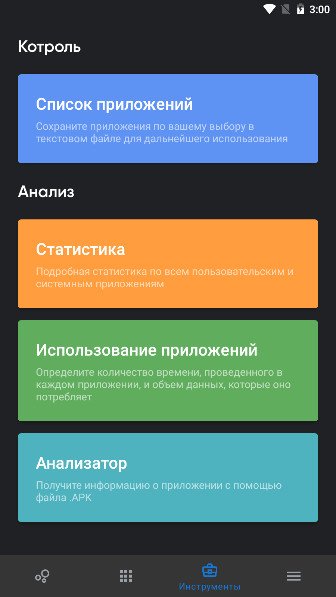 • Подробная статистика по всем приложениям;