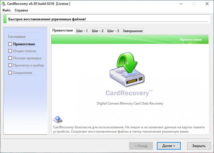 Скачать программу CardRecovery 6.30 build 0216 RUS/ENG (5,5 МБ):