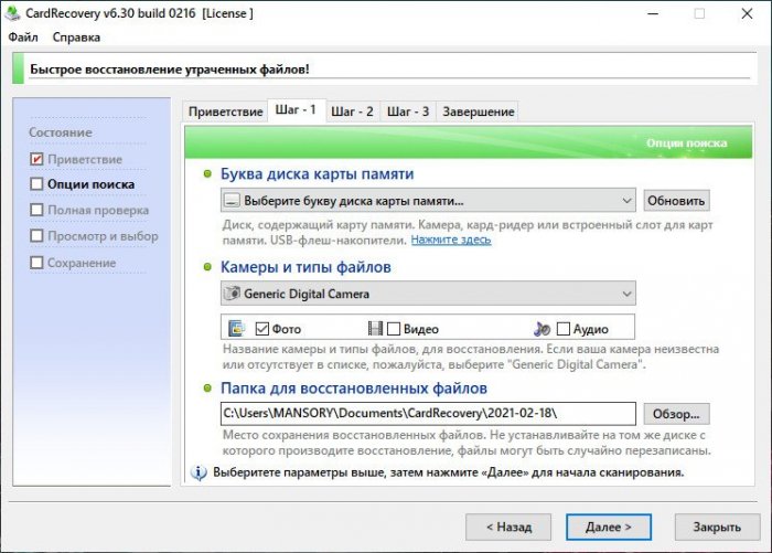 Данные и диски ⇒ CardRecovery 6.30 build 0216