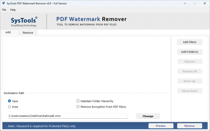 Данные и дискиSysTools PDF Watermark Remover 6.0
