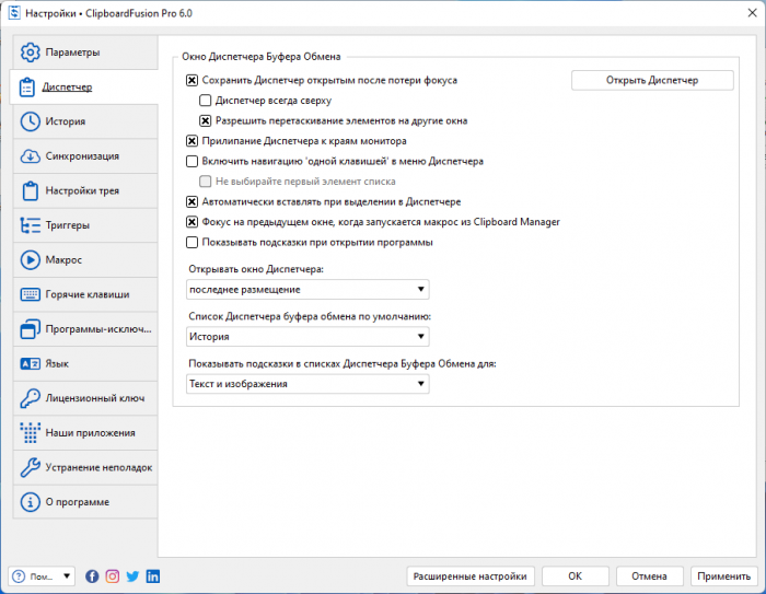 ClipboardFusion - утилита для настройки и удобной работы с буфером обмена. Теперь все скопированные когда-либо фрагменты текста, фразы, отдельные слова, URL-ссылки и др. будут храниться в памяти программы, позволяя Вам использовать их при необходимости в любое время.