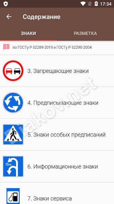 • Дорожные знаки и разметка: список актуальных дорожных знаков с описанием