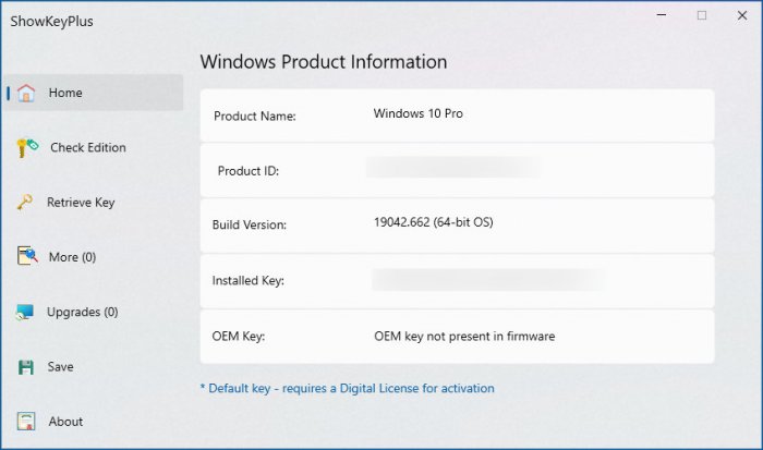 ShowKeyPlus – небольшая программа, с помощью которой можно просмотреть всю информацию о системе, узнать ключ лицензии и извлечь его. В отличие от аналогов или стандартных средств Виндовс, программа «видит» все установленные ОС на каждом разделе носителя. Это позволяет детально изучить лицензию продукта, успешно его перенести на другое устройство или продлить срок использования. Помимо просмотра доступна и запись информации в тактовый файл формата txt.