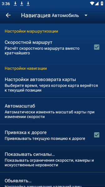 • Приложение отображает места установки знаков обязательной установки, а также информацию о максимальной скорости