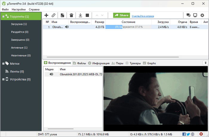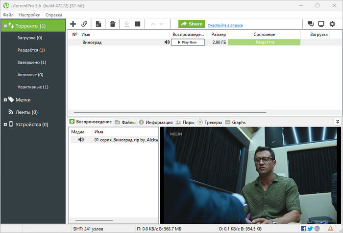 µTorrent - быстрый, удобный, бесплатный и компактный торрент-клиент. Клиент µTorrent, на сегодняшний день, является одним из самых функциональных решений для работы с сетью BitTorrent. Программа сочетает в себе оптимальную функциональность при небольшом размере. Поддерживает работу независимо от треккера, позволяет загружать сразу несколько файлов, имеет настраиваемую полосу пропускания, быстрое восстановление прерванной загрузки и многое другое.