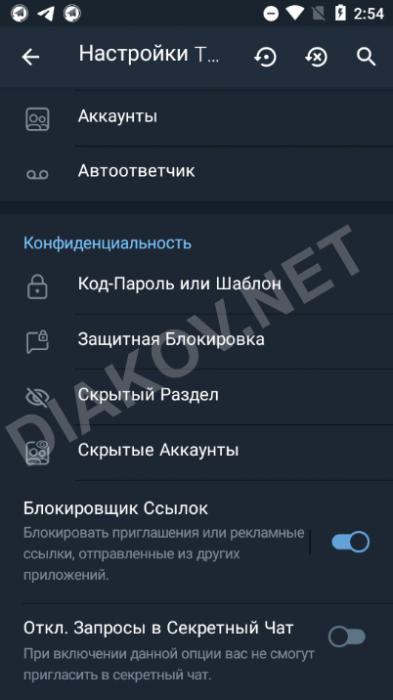 • Скрытый Раздел (Скройте свои чаты и контакты. Установите для них пароль или графический ключ);
