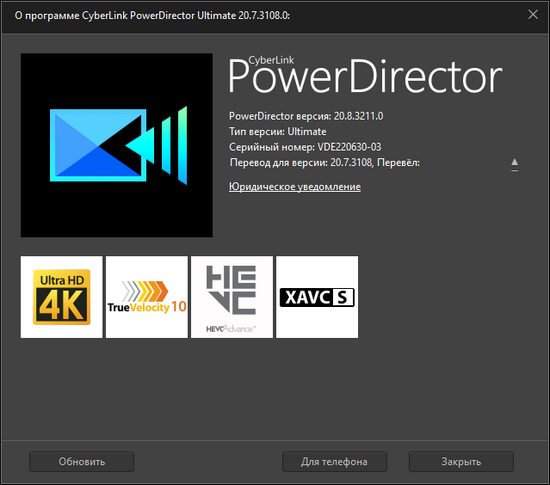 Скачать программу CyberLink PowerDirector Ultimate 20.8.3211.0 + русификатор (716,1 МБ):