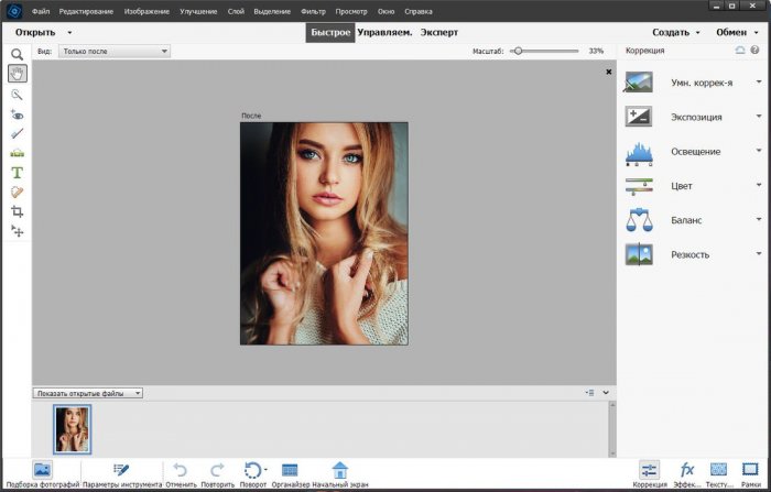 • Photoshop Elements позволяет применять несколько эффектов к одному фото, выбирать готовые шаблоны и темы.