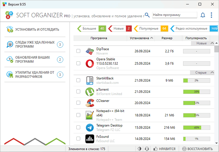 Soft Organizer следит за всеми изменениями в системе и за каждым процессом установки приложений. Вы можете легко узнать, какой файл или запись реестра были изменены в процессе установки. Используя эти данные, Soft Organizer может полностью удалить приложение.