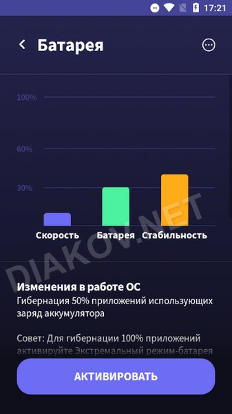 Гибернация (оптимизация системы Android)Каждое приложение Android может иметь несколько служб. Они работают в фоновом режиме и выполняют ряд задач. Многие ошибочно полагают что убивая приложение из диспетчера задач оно перестает использовать ресурсы. Службы приложения в этом случае остаются активными и используют ресурсы системы, разряжая батарею. Гибернация позволяет усыпить приложение и остановить все его службы, таким образом оно перестает использовать ресурсы и разряжать батарею. Гибернация - это мягкий и эффективный способ увеличить быстродействие и время работы от аккумулятора.