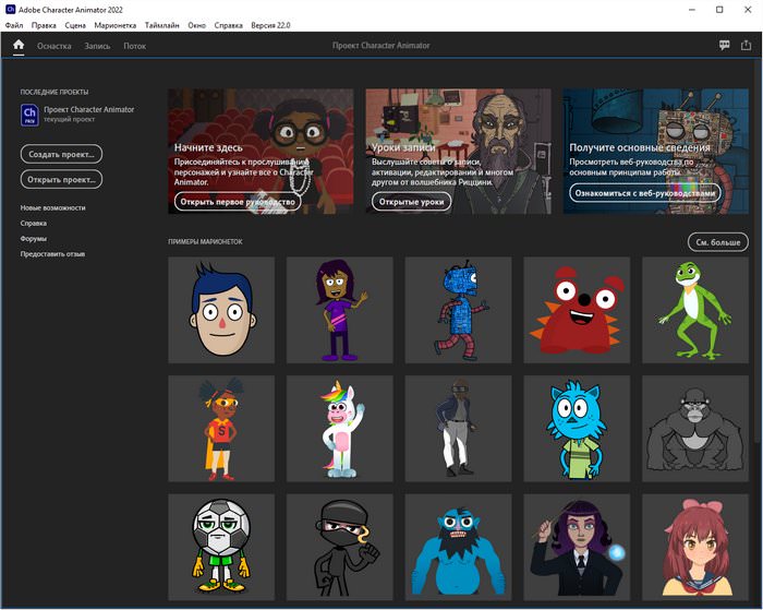 Скачать программу Adobe Character Animator 2022 v22.5 (1,59 ГБ):