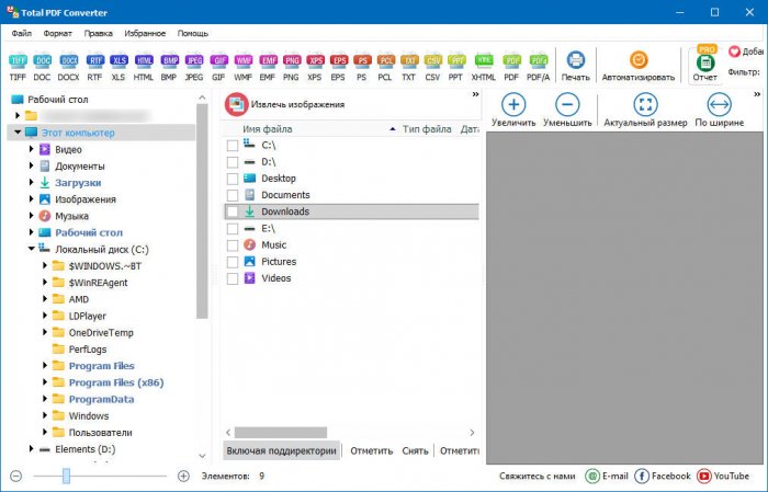 - Возможность преобразования PDF в следующие форматы изображений: BMP, JPEG, PNG, GIF, TIFF, WMF, EMF и EPS