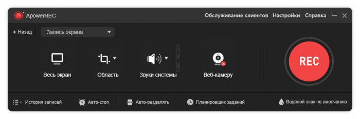 ApowerREC - многофункциональная программа для захвата и записи экрана, которую Вы можете использовать для создания видеоуроков или коротких домашних видео с помощью веб-камеры. Приложение позволяет делать снимки экрана и захватывать активность на рабочем столе, записывать прямые потоковые сеансы, создавать демонстрационные видеоролики, записывать онлайн-лекции или прохождение игры и многое другое.