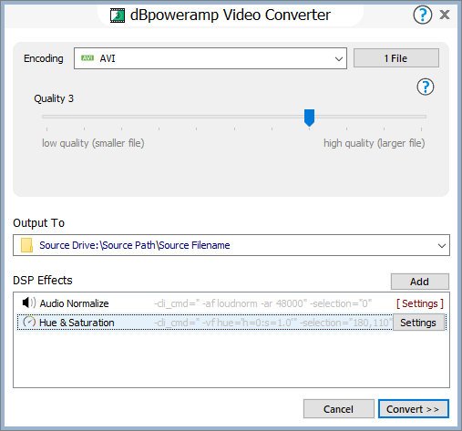 Эффекты DSPОбработка видео и звука с помощью эффектов, таких как масштабирование или шумоподавитель. DBpoweramp - это полнофункциональный видео конвертер.