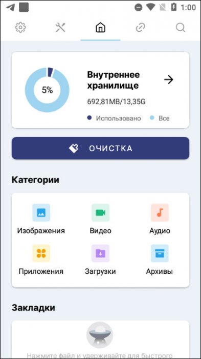 Просмотр категорийНа домашней странице Вы можете напрямую просматривать файлы своего устройства через различные типы, включая изображения, видео, приложения, загрузки, архивы и др. Также Вы можете просматривать свои локальные файлы в виде сетки или списка.