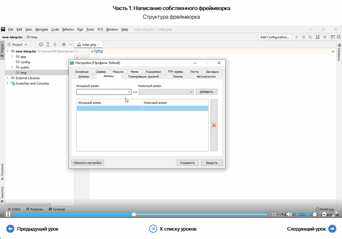 Часть 2. Написание пользовательской части CMS интернет-магазина- В данной части 45 уроков общей продолжительностью более 15 часов видео.