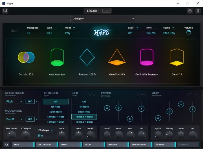 AIR Hype оснащен четырьмя звуковыми двигателями; FM, Wavetable, Virtual Analog и Sampled, созданные в результате десятилетий исследований и тщательного проектирования. В то время как они великолепны по отдельности, они вместе создают мощные, выразительные звуки, наполняя вашу студию массивными, многомерными звуковыми текстурами.