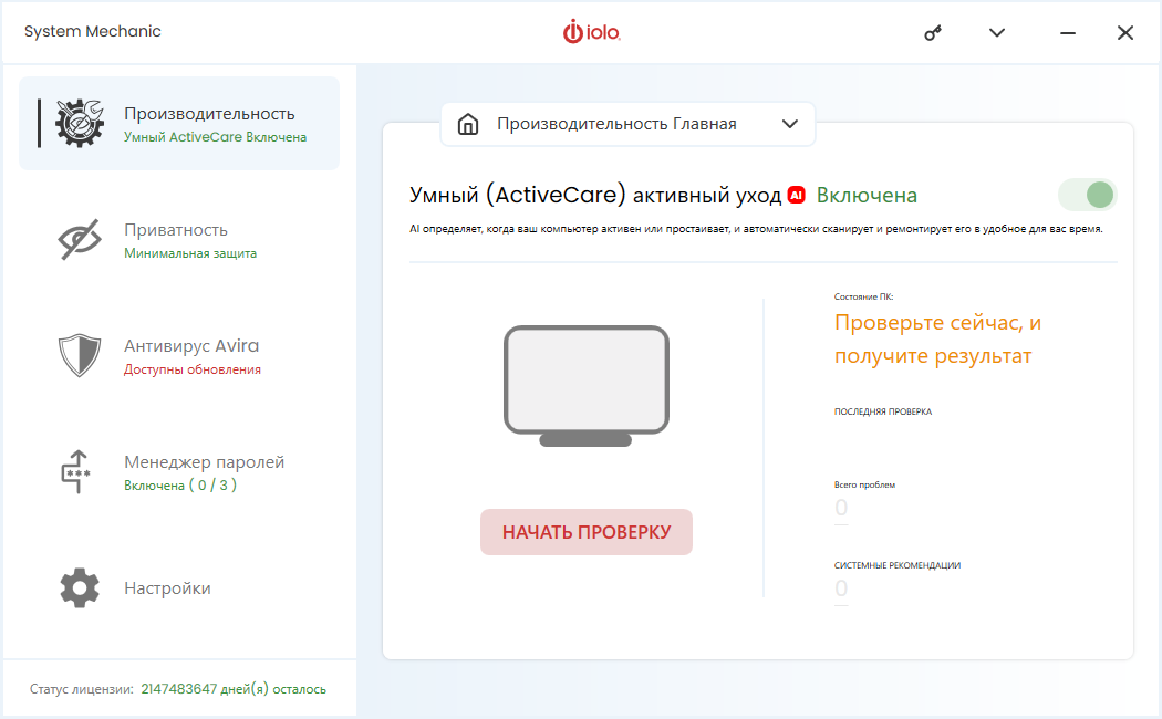 System Mechanic, сочетающий в себе четыре отмеченных наградами продукта iolo для очистки ПК, антивируса и защиты данных, — это все, что вам нужно, чтобы ваш ПК был безопасным, быстрым и безошибочным.