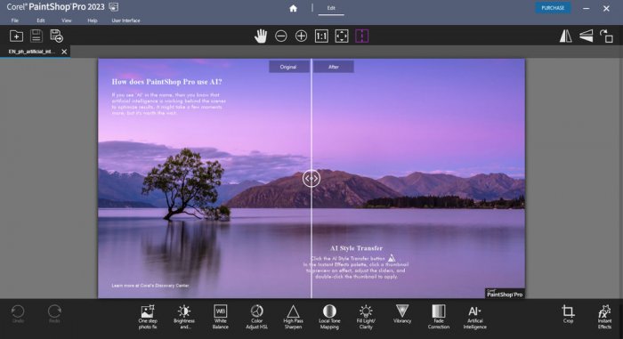 Самая технологически продвинутая на сегодняшний день версия нашего программного обеспечения помогает фотографам в достижении новых, ранее недосягаемых в PaintShop® Pro высот. И все это благодаря реализованным на базе искусственного интеллекта инструментам, таким как новые ИИ-функции шумоподавления, повышения дискретизации и устранения артефактов, а также переработанная ИИ-функция применения стиля. Поставив технологии машинного обучения на службу творчеству, фотографы, фотохудожники и разработчики контента смогут быстро создавать замечательные изображения, привлекающие всеобщее внимание.