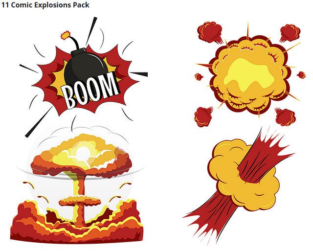 Хотите придать неповторимый стиль своим фотографиям? Наша коллекция из 111 изображений поможет вам создать отличные фотомонтажи в стиле комиксов! Эта палитра графических элементов Comic позволит вам разжечь свое воображение и создавать плакаты, поздравительные открытки и другие оригинальные фотомонтажи в духе приключений комиксов!