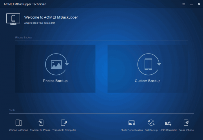AOMEI MBackupper – полезный инструмент для управления файлами и резервного копирования данных с мобильных устройств Apple. С его помощью вы сможете скачать на компьютер или ноутбук свои фотографии, видео и аудио записи, сообщения и контакты, хранящиеся на устройствах iPhone или iPad.