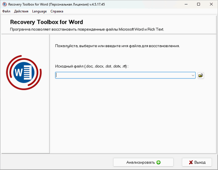 Офис ⇒ Recovery Toolbox for Word 4.5.17.45