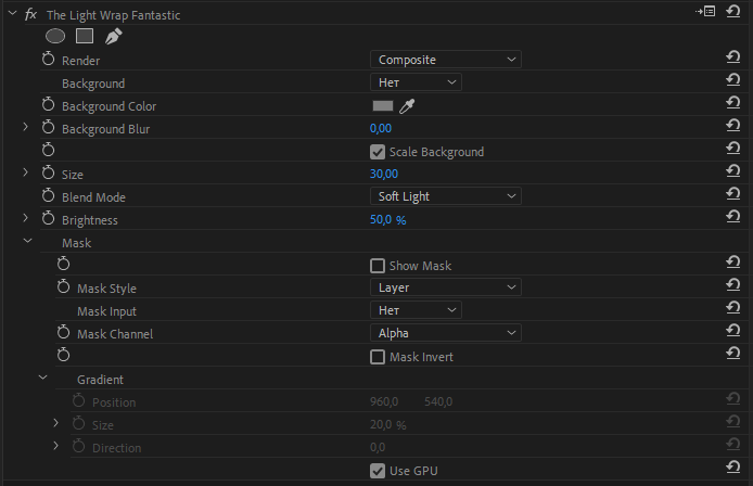 Light Wrap позволяет создавать более качественные композиции, позволяя пользователям легко смешивать фон с передним планом таким образом, что создается впечатление, что свет фона влияет на передний план, по сути имитация подсветки.